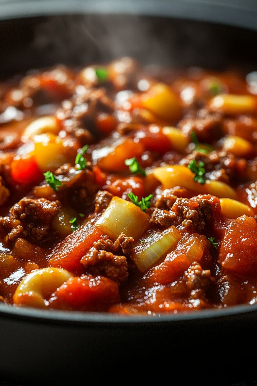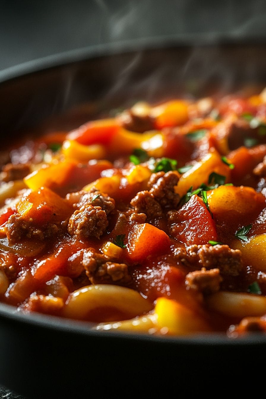 A hearty, easy-to-make beef and macaroni dish cooked in one pot for a fast, flavorful dinner.